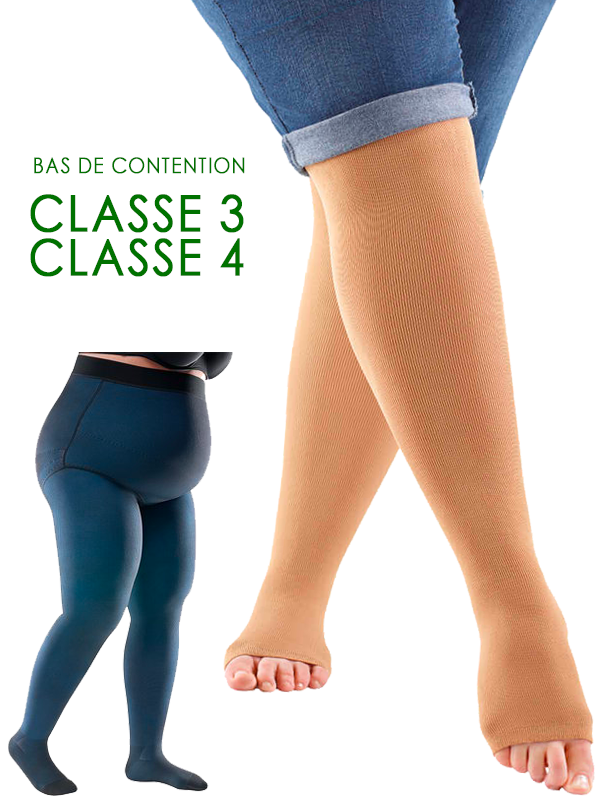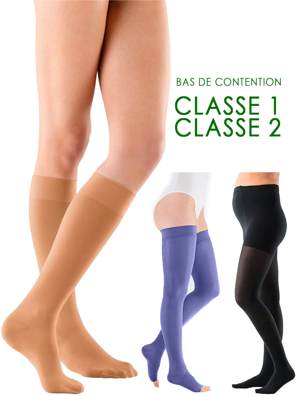 Vous trouverez chez nous les chaussettes (AD), bas auto-portant mi-cuisse (AG) et panty (AT) de contention des principaux fabricants.